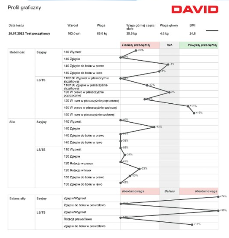 W ramach pakietu wykonujemy analizę postawy i testy na innowacyjnych urządzeniach medycznych.